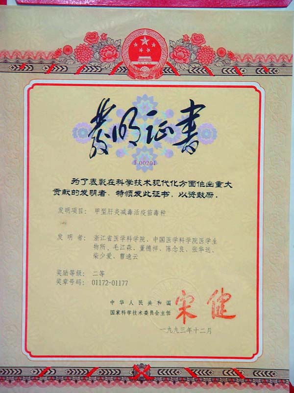 浙江省江山人,1956年毕业于上海第一医学院。1957年入中国医学科学院病毒系从事研究工作,先后在协和医科大学和北京师范大学进修过生物化学和物理化学,1978年调至浙江省医学科学院工作。1983~1984年在美国国立卫生研究院(访问科学家)从事研究工作。曾任浙江省医学科学院副院长、院长。1991年当选为中国科学院学部委员(院士)。先后荣获国家级有突出贡献中青年专家、浙江省劳动模范、全国先进工作者等荣誉称号。 毛院士从事病毒学研究50年,早期主要从事病毒用细胞培养研究,与他人合作建立了可用于肠道、麻疹病毒和甲肝病毒等研究的人胚肾传代细胞(EMRN株)。在脊髓灰质炎活疫苗的研发中,负责活疫苗免疫反应和肠道内增值研究。1960年建立了乙型脑炎病毒—鸡胚细胞干扰素的产生和鉴定系统,研究了高滴度干扰素产生的条件,开拓了中国干扰素的研究工作。尔后,进行了对麻疹疫苗、抗流感药物金刚烷胺及乙型脑炎病毒的研究。发现重水(D2O)能明显增加病毒的热稳定性,并阐明其机理,建立了在生物大分子中测定氚含量的简便方法。1964年著文论述过遗传信息逆转录问题,是国际上认识到信息有可能逆转录的少数科学家之一。1978年开始从事甲肝病毒(HAV)及疫苗的研制。分离出HAV,成功地对HAV进行了减毒,使其适应于二倍体细胞,由此培育出减毒活疫苗减毒株(H2株),并研制出甲肝活疫苗,1992年,卫生部批准批量生产和大规模使用,累计使用1.7亿人份,出口印度等十多个国家,为控制甲肝流行做出了卓越贡献。